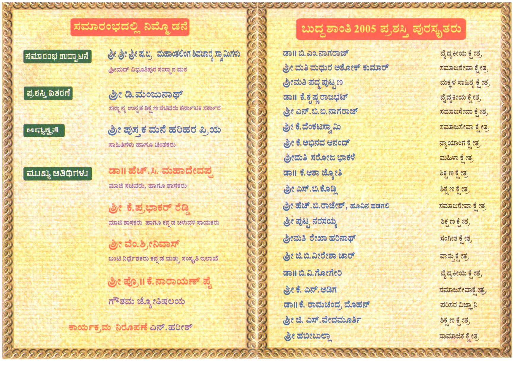 Chief Custodian, Bangalore University Post graduate – Science Examinations 2003
