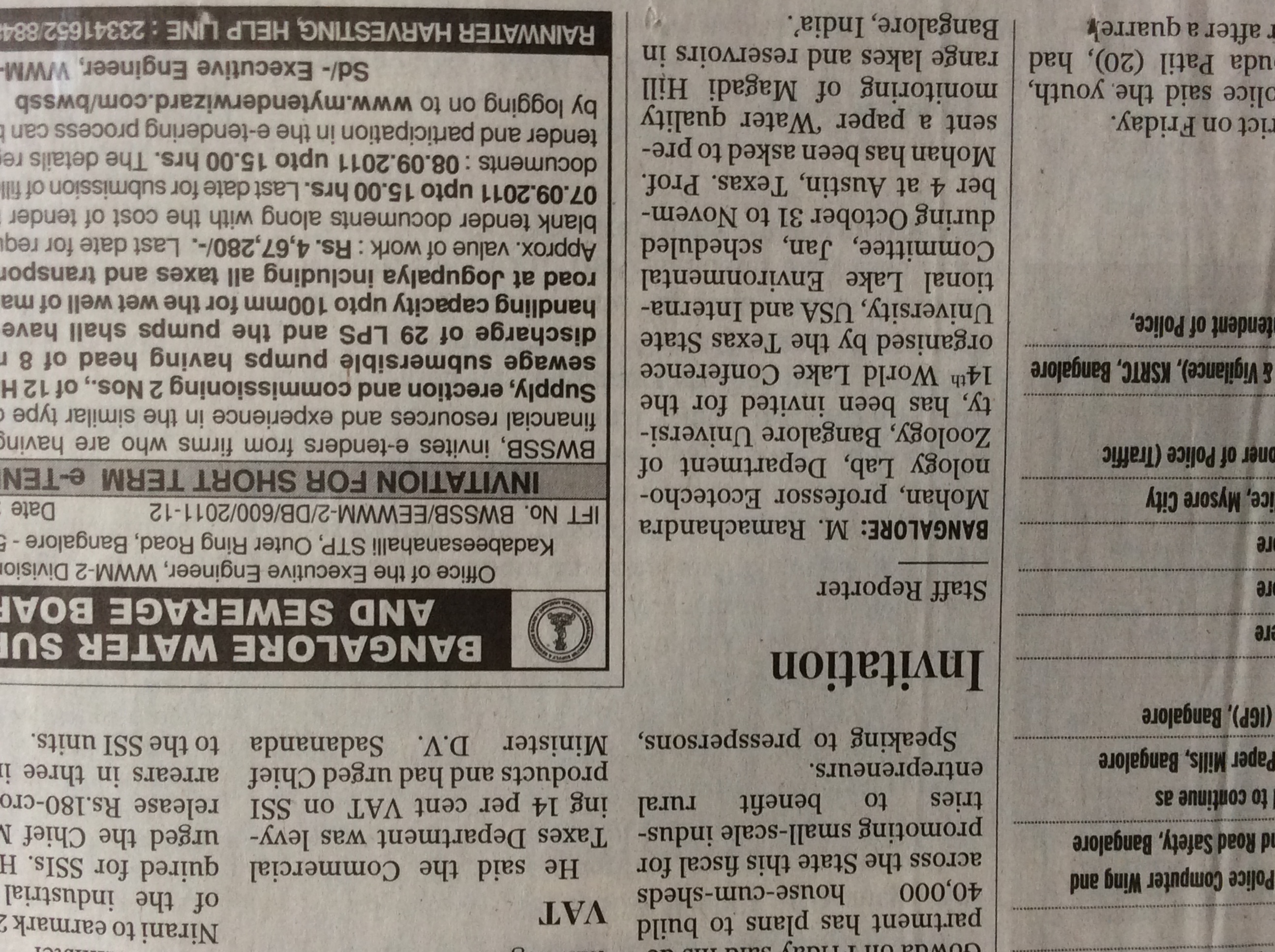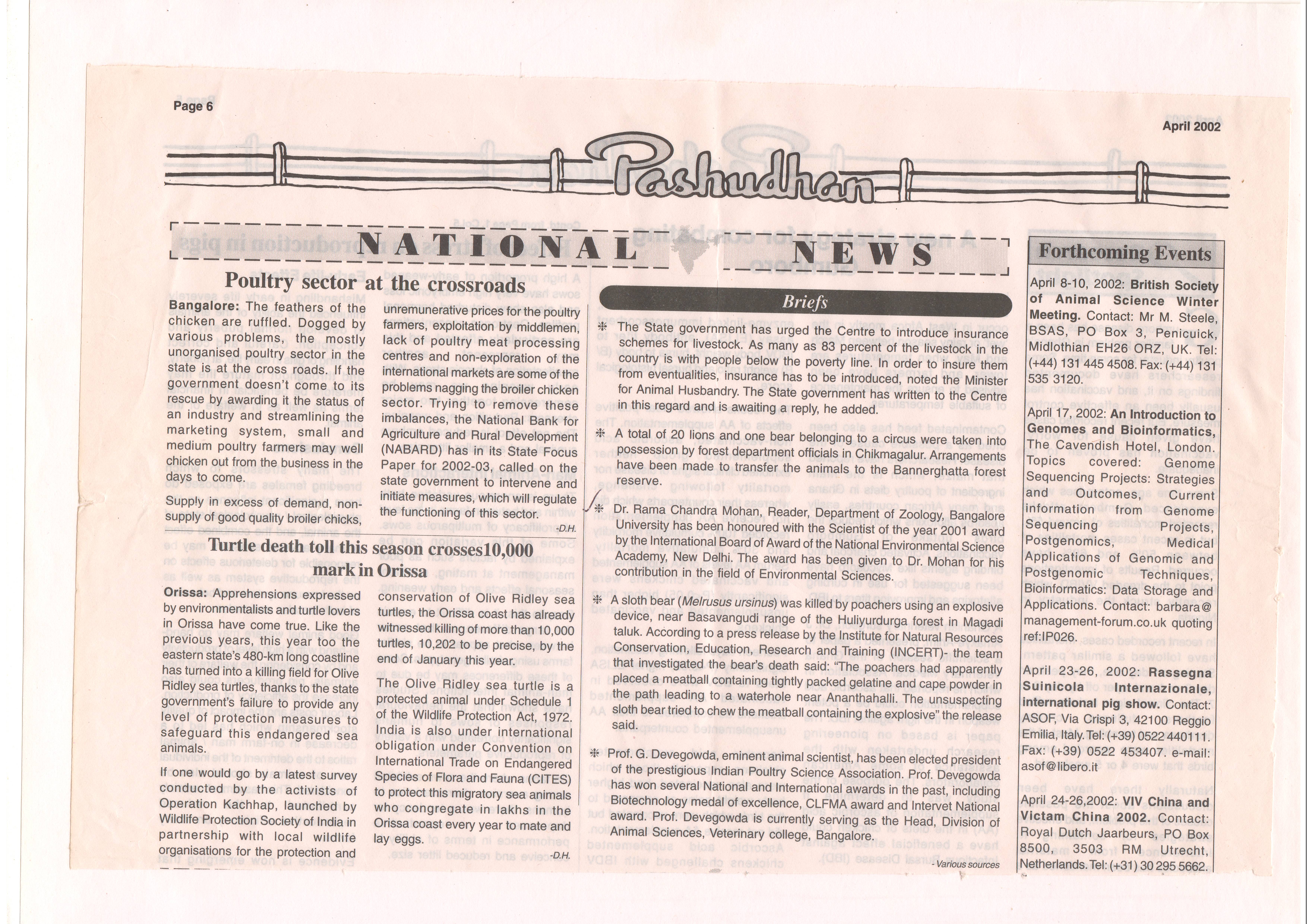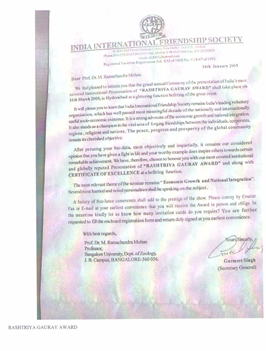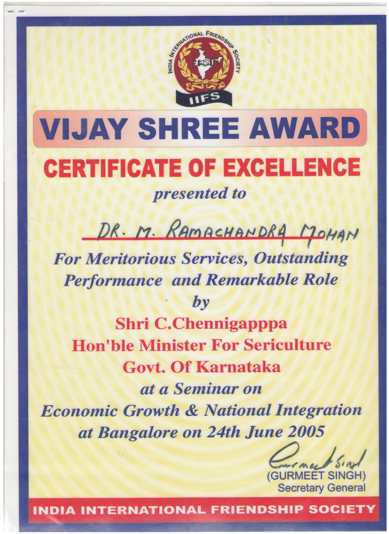 Prof. Mohan was awarded G.P. Chatterjee Memorial National Award. (Dept. of Science and Technology, Govt. of India) (News Clippings), View List and he carried out post-doctoral research at Ceske Budejvice, Czech republic, 1997 and also worked as Post-Doctoral Research Fellow at Osaka Otsu, Japan,2001. With the funding support of UNEP and ILEC. He won Best Research Award as Distinguished Scientist of the Year Award – 2008, Environmentalist of the Year Award – 2002, Scientist of The Year Award – 2001.