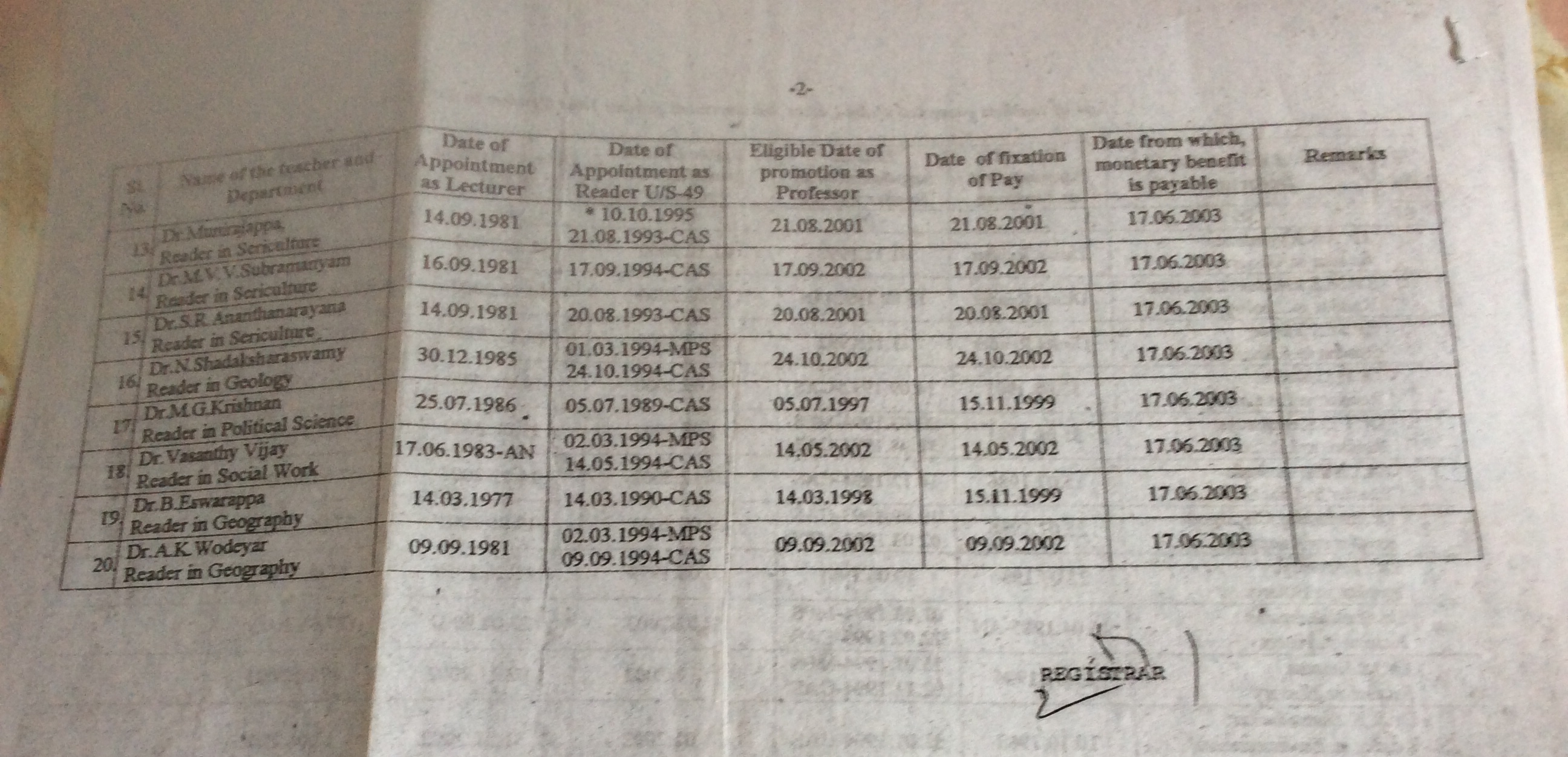 - Professor, Department of Zoology, Bangalore University India, from 2000 to date- 18 Years