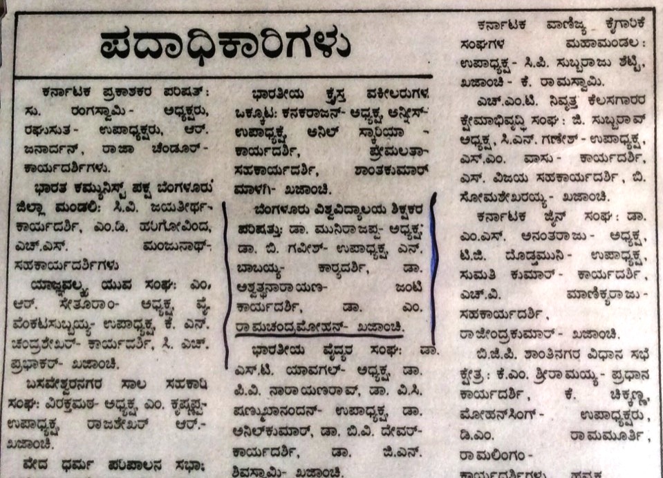 - Academic Council Member, Govt Science College Bangalore University, India.( 4-2-2016 ) – 3 Years