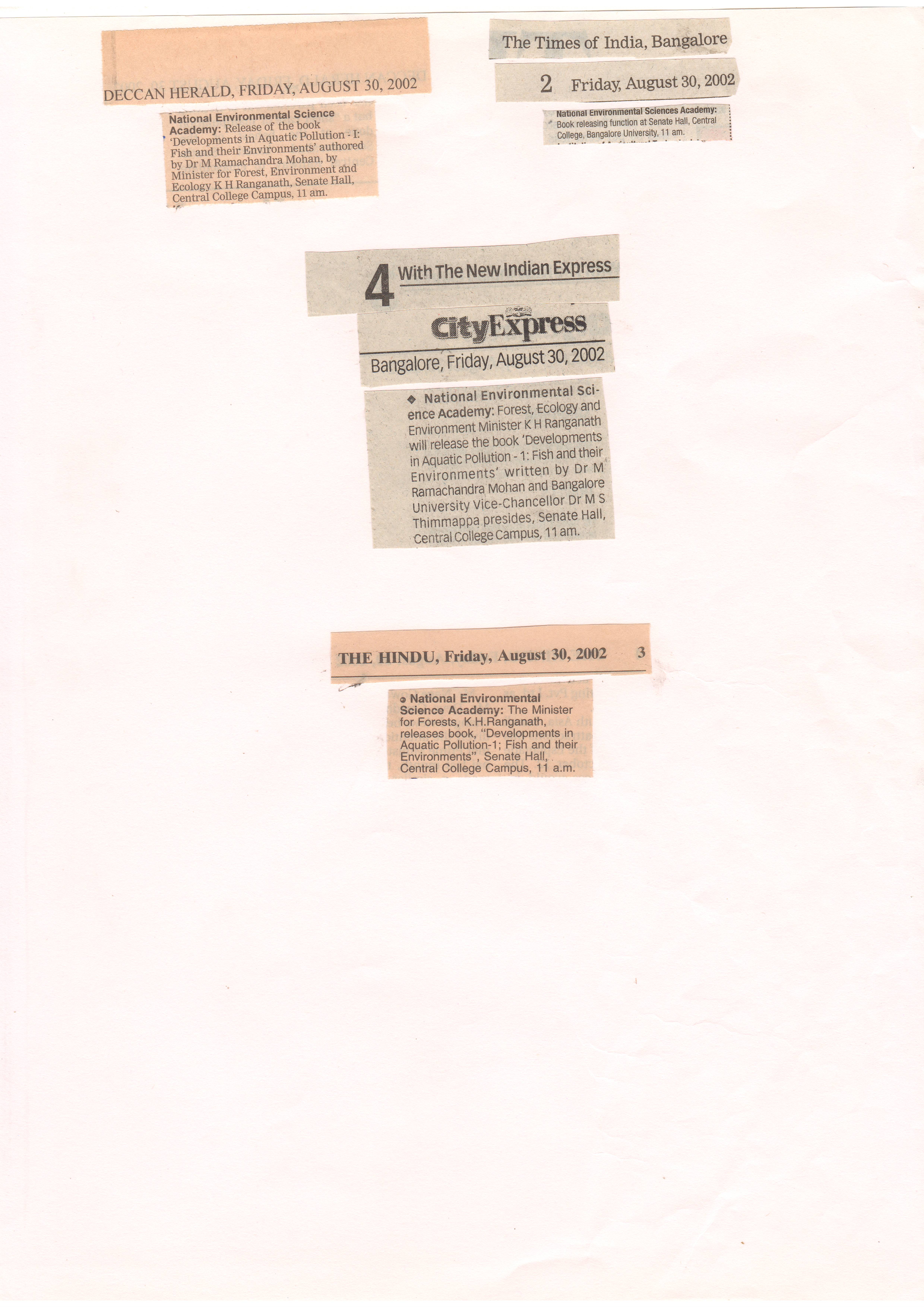 - Convener, National Environmental Science Academy ,New Delhi, since 2002