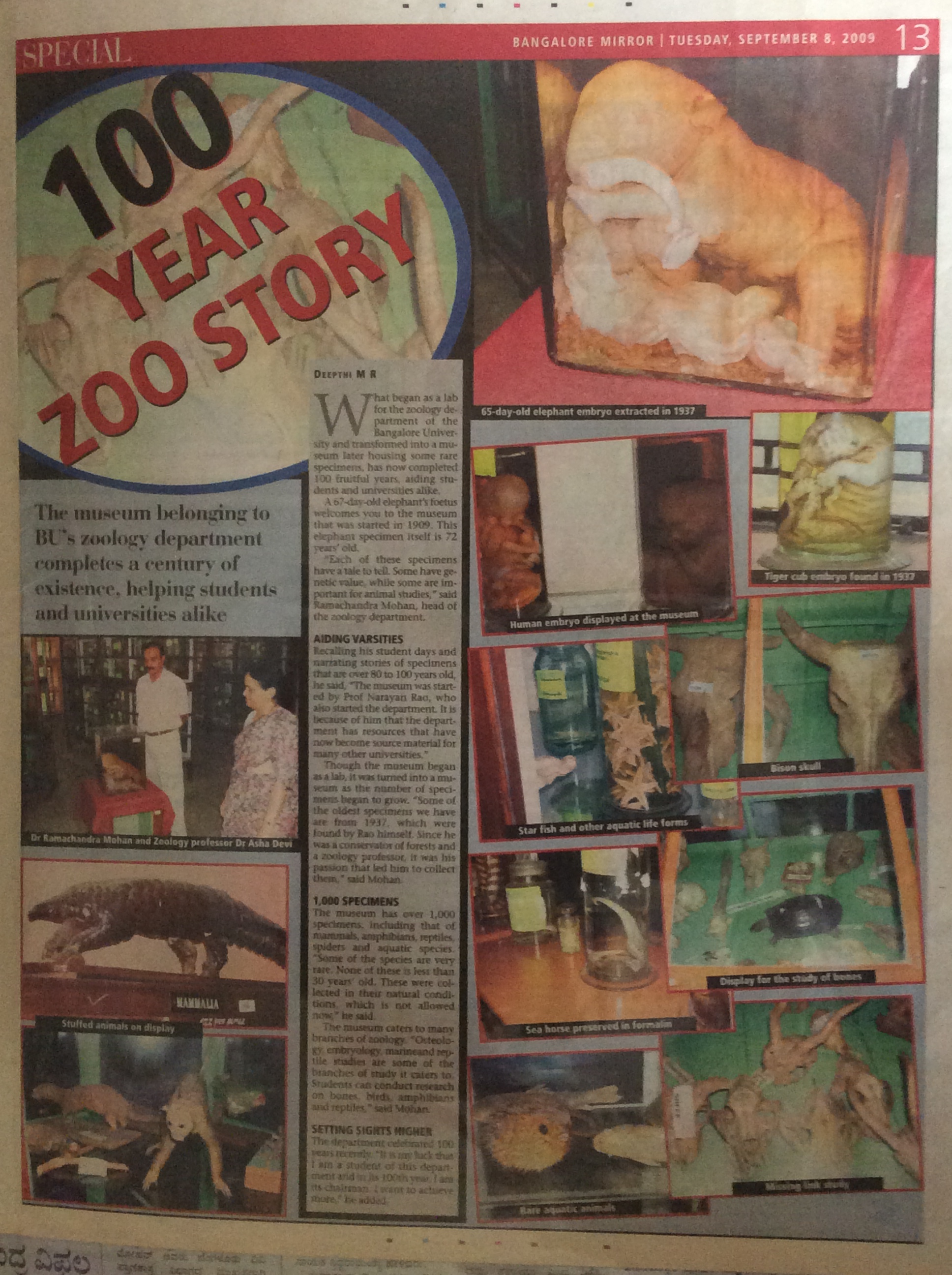 Coordinator, C A S -UGC Dept of Zoology, Bangalore University 2014