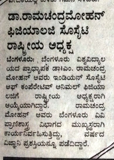 Dr M Ramachandra Mohan joined as a faculty member in 1992 to the Department of Zoology and became Professor in 2000 and continuing as professor till date. 18 Years of Professorship 32 Years of P G and Research 10 Years of Administrative Experience in Bangalore University. Based on his academic achievements and research accomplishments the Govt. of India, Ministry of Environment, Forest and Climate Change bestowed the position of Member (CPCSEA) 2018: The Committee for the Purpose of Control and Supervision of Experiments on Animals.Access Gazette Notification