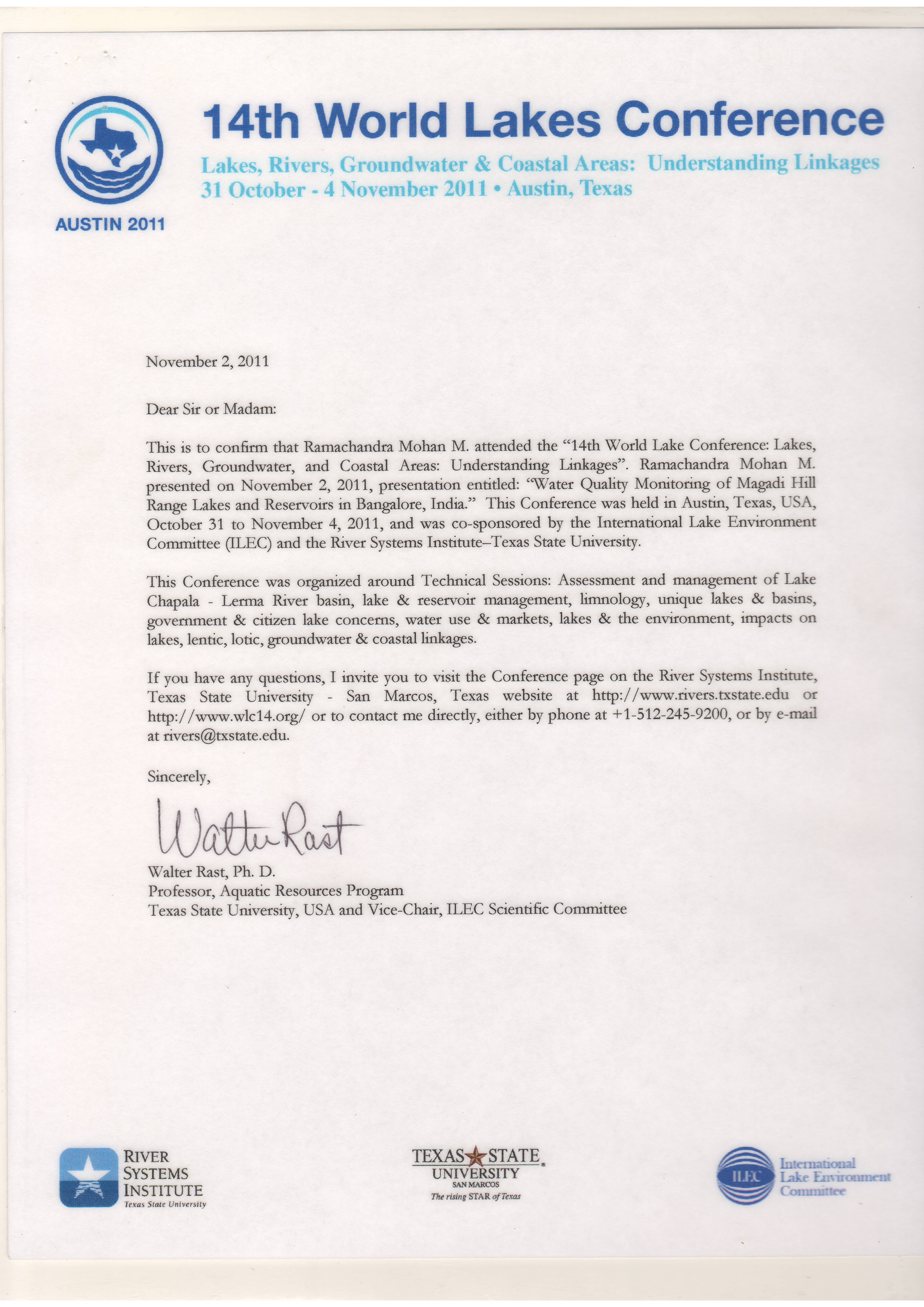 - Academic Council Member Bangalore University, India (19-10-2013-19-10-2015) 2 Years